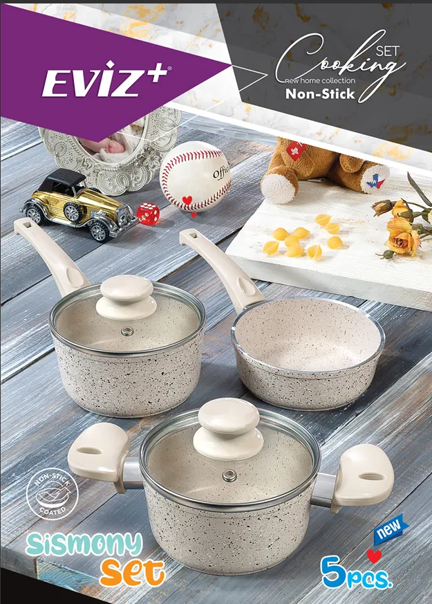 EVIZ: آلومینیوم فورج با پوشش گرانیتی مقاوم، دو دسته، درب پیرکس، دوام بالا و طراحی مدرن.