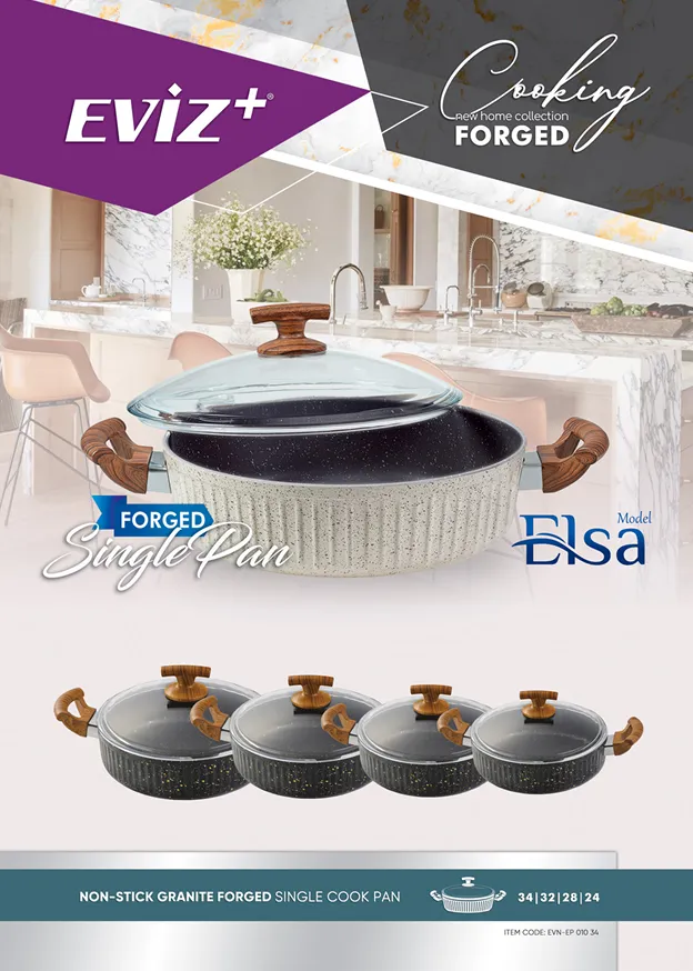 تابه گرانیتی فورج دو دسته EVIZ با درب پیرکس، گزینهای ایدهآل برای آشپزی حرفهای و خانگی است. پوشش داخلی نچسب چندلایهٔ آن باعث میشود غذاها با کمترین میزان روغن پخته شوند و شستوشو سریعتر و آسانتر انجام گیرد. بدنهٔ فورجشده علاوه بر استحکام بالا، حرارت را یکنواخت پخش میکند و این ویژگی در پخت یکنواخت انواع غذاها بسیار مؤثر است.